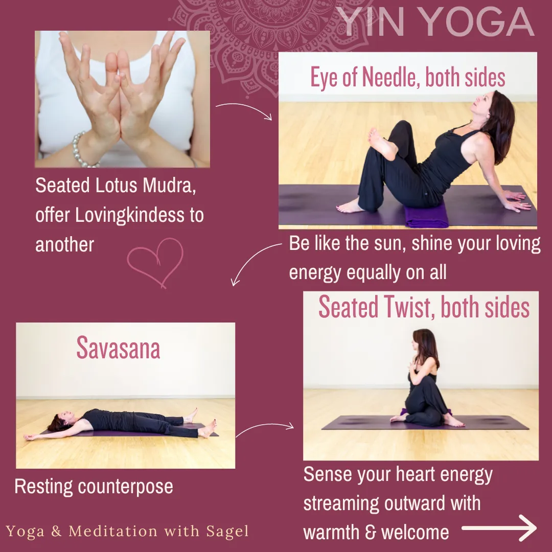 In this Yin mini, you might enjoy a Lovingkindness meditation when arriving to the mat or during resting periods between the postures to offer kind wishes to yourself and others.