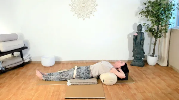 Transition slowly into a comfy and supported Savasana position of choice for final relaxation and whole self integration. Linger 5 minutes or longer as it feels good!